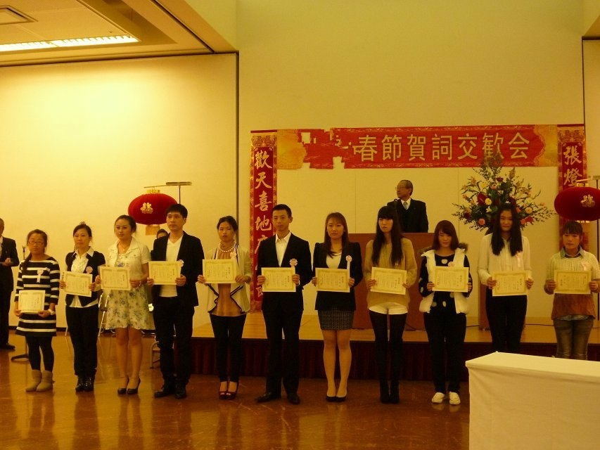 新年会上日语获奖者接受表彰